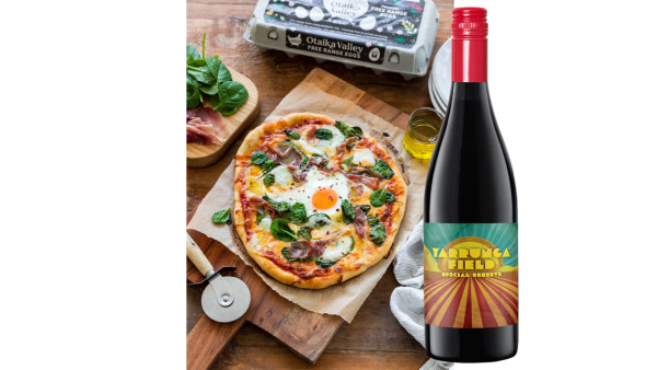 Florentine Pizza with the rich, 95pt Yarrunga Field Special Reserve Shiraz from star winemaker Sam Trimboli.
