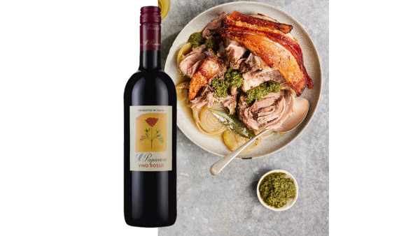Slow-Roasted Pork Shoulder with a luscious blend of a luscious blend of Italian grapes in Il Papavero.