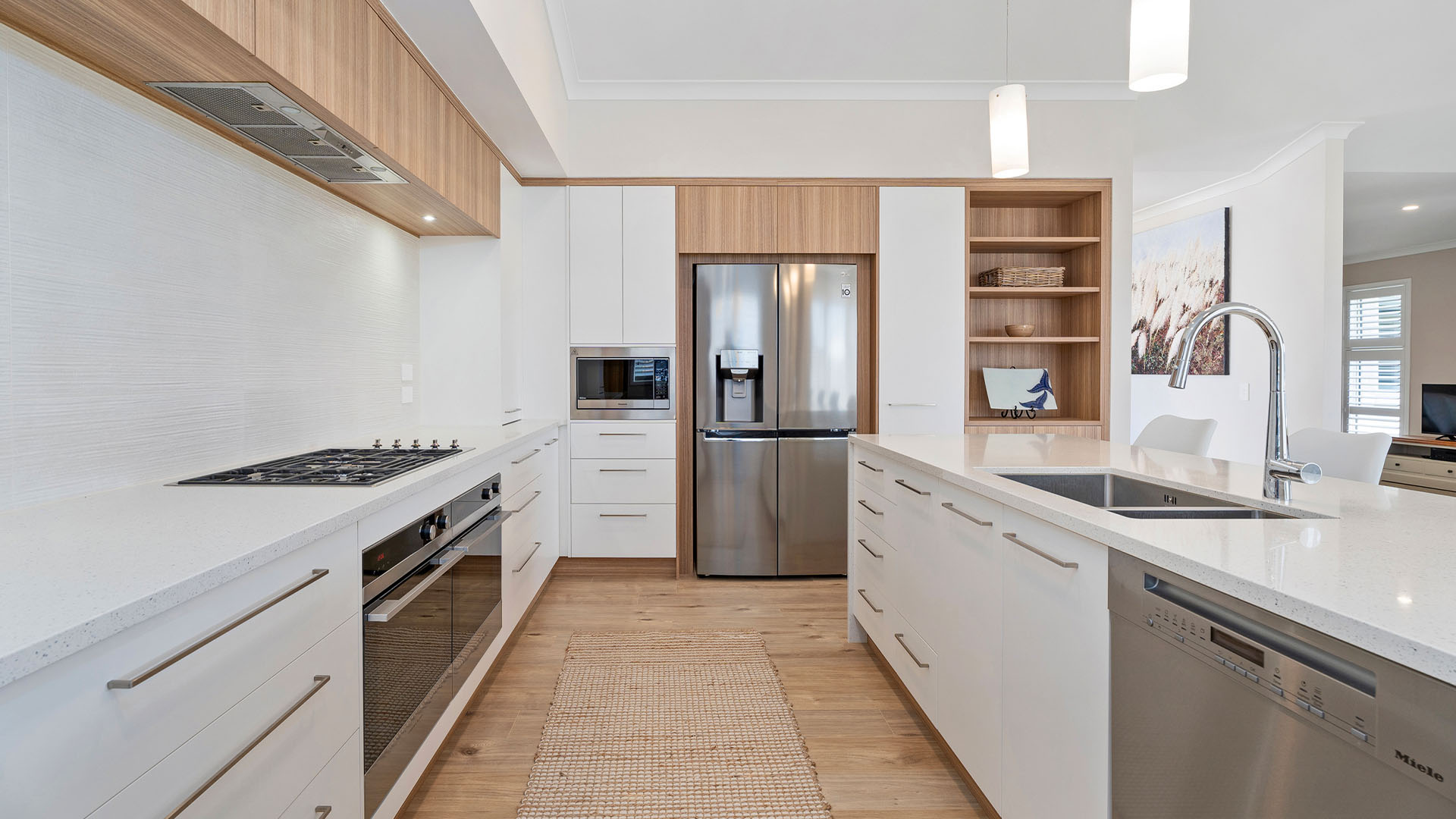 My favourite part of this kitchen is… practical things like the wide open space between the bulkhead and the bench buffet, that you can walk past the dishwasher when it’s fully open and a quiet range hood. The list goes on!
