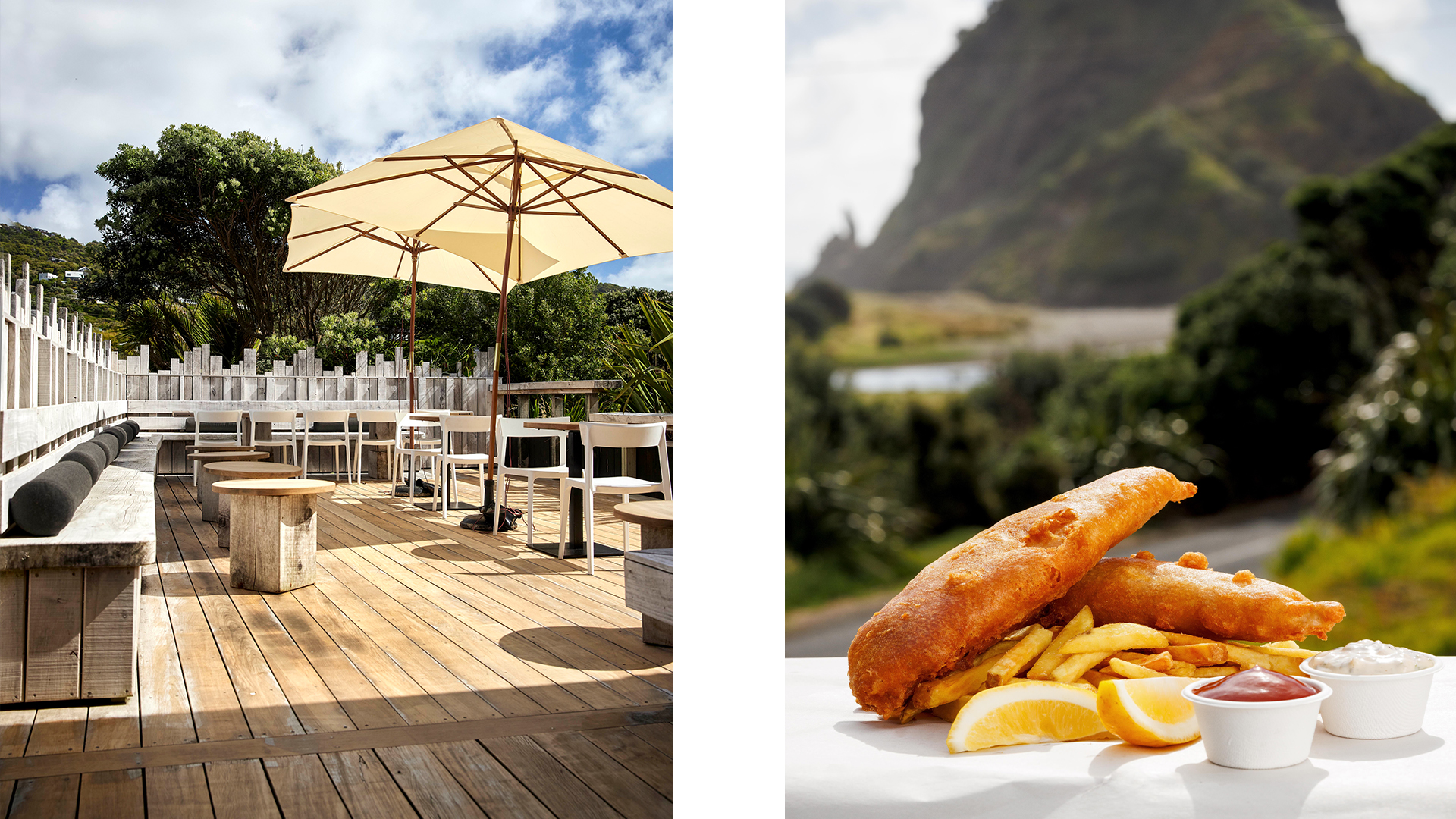 Tucked neatly beside Piha Store, the restaurant is sleek yet approachable, with an open kitchen anchoring the main dining room and a large deck offering uninterrupted views of Te Piha. The sundeck is reserved exclusively for walk-ins and offers a condensed menu that spans both ends of the spectrum, from the very popular fish and chips ($20 on the day we visited) to a rotating selection of dishes drawn from the restaurant’s degustation offering. For those wanting to settle in for a longer experience, there are two and three course Trust the Chef options, a five-course Signature Menu, The Story of New Zealand Extended Menu, and a five course Test Kitchen Menu (available on Wednesdays only).