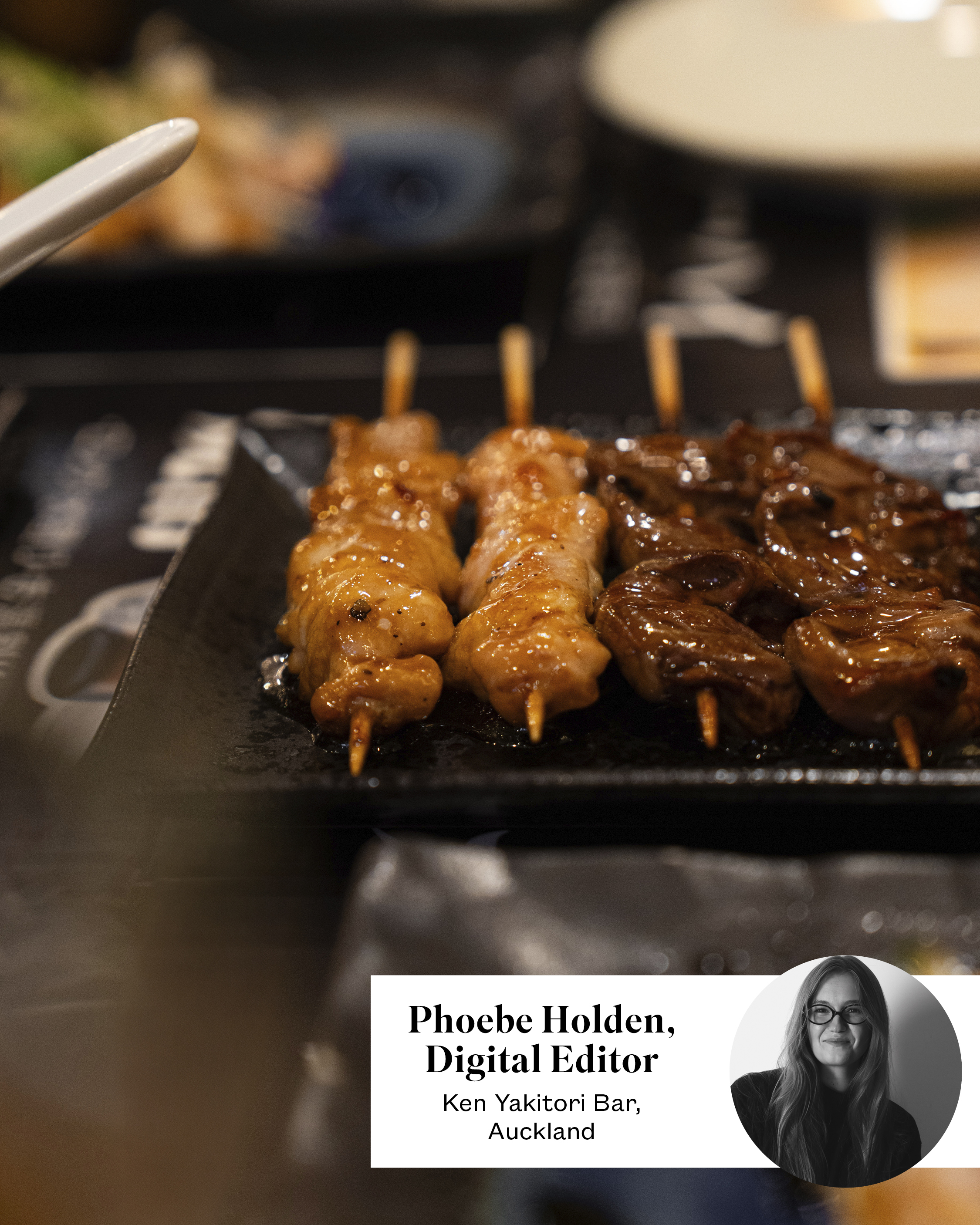 My family and I have been going to Ken Yakitori for years, it’s an absolute staple. One year, my dad got a Ken Yakitori T-shirt for his birthday. It’s casual and quick, the staff are wonderful, and the décor is… something (there are chainsaws hanging from the ceiling). But you barely register it because the food is so moreish. Aside from the yakitori, we usually end up with a beer or two, tea, and multiple servings of Sashimi, Whole Garlic, and the Sesame Broccoli. The complimentary Cabbage Wedge with Kewpie for dipping is restocked generously, and you can’t go wrong with Tofu — or the Chicken Hearts.