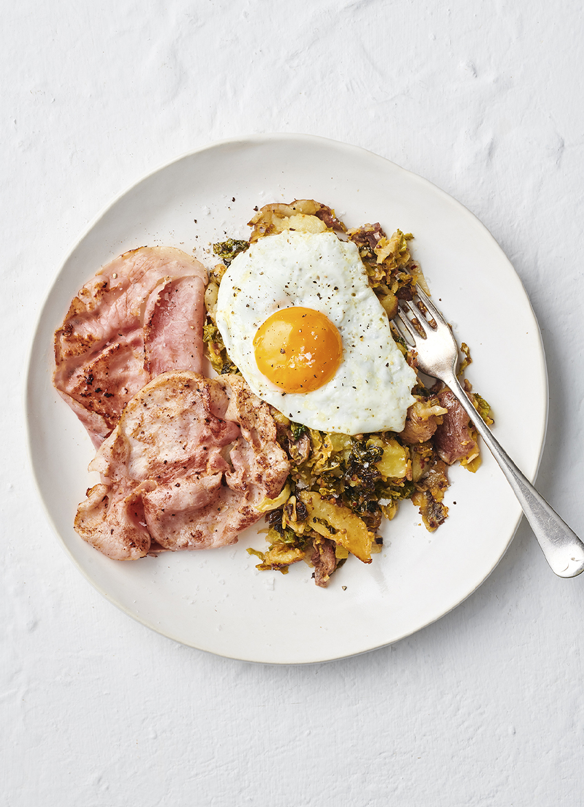 Crush the cooked potatoes in your hands and add to the cabbage and leek. Add the garlic and mustard and mix to combine. Season well.