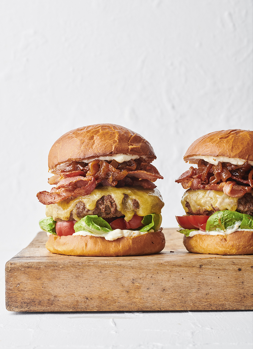 The two most important tips for a great burger: use really good quality beef mince with a decent fat content, and don’t work the mixture too much otherwise you’ll end up with a dense, hard burger instead of a big juicy one!