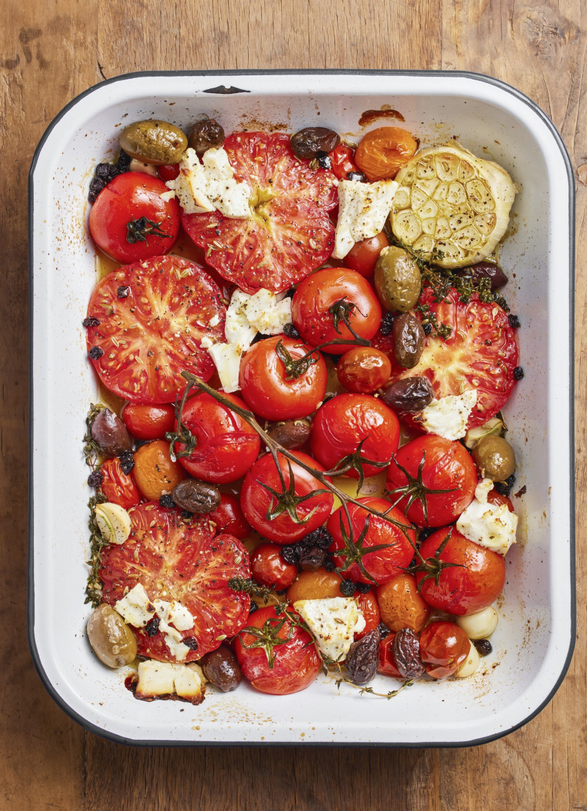 BLISTERED TOMATOES WITH OLIVES, GARLIC AND THYME