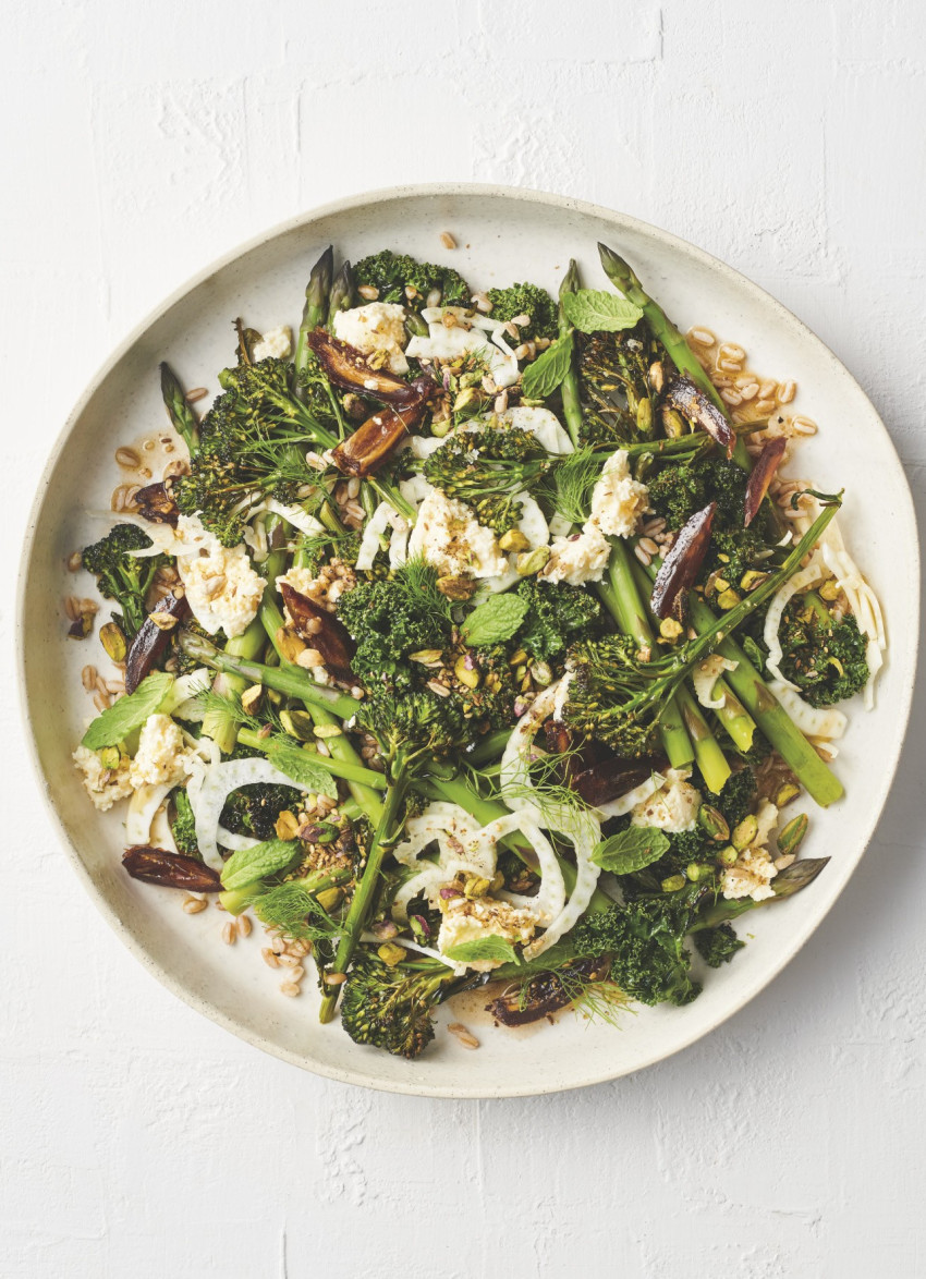 Broccolini and Asparagus with a Farro and Ricotta Salad