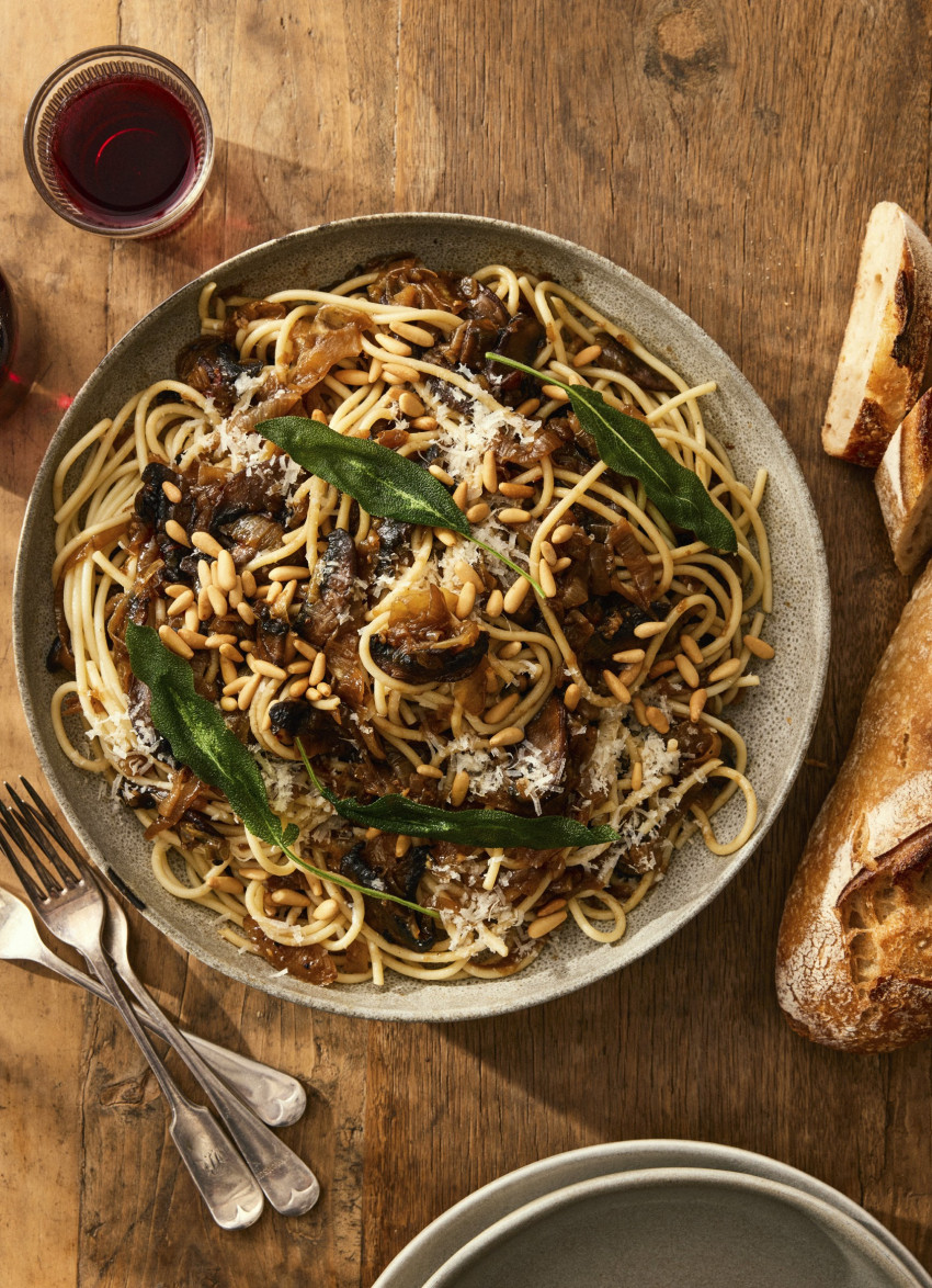 Caramelised Onion and Mushroom Spaghetti