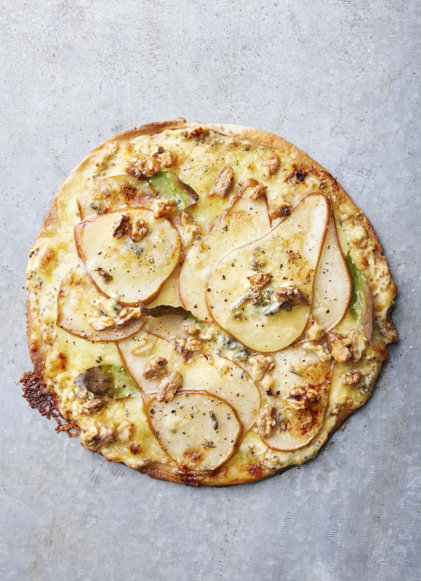 Cheaty-pants Pizza with Pears, Blue Cheese and Walnuts