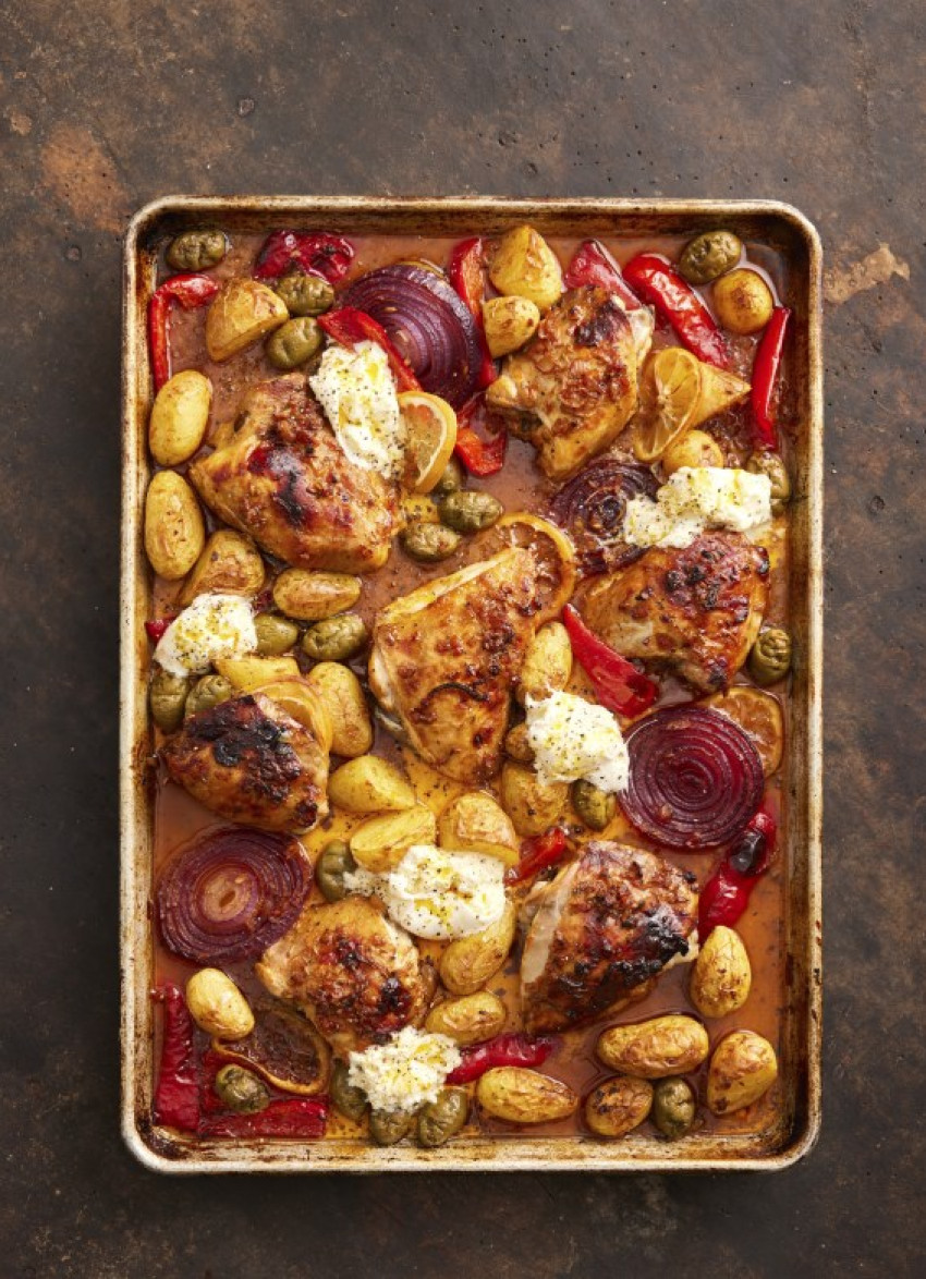 Chicken, Potato and Green Olive Tray Bake