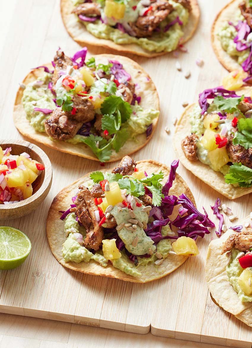 Chipotle Chicken Tostadas with Pineapple and Chilli Salsa