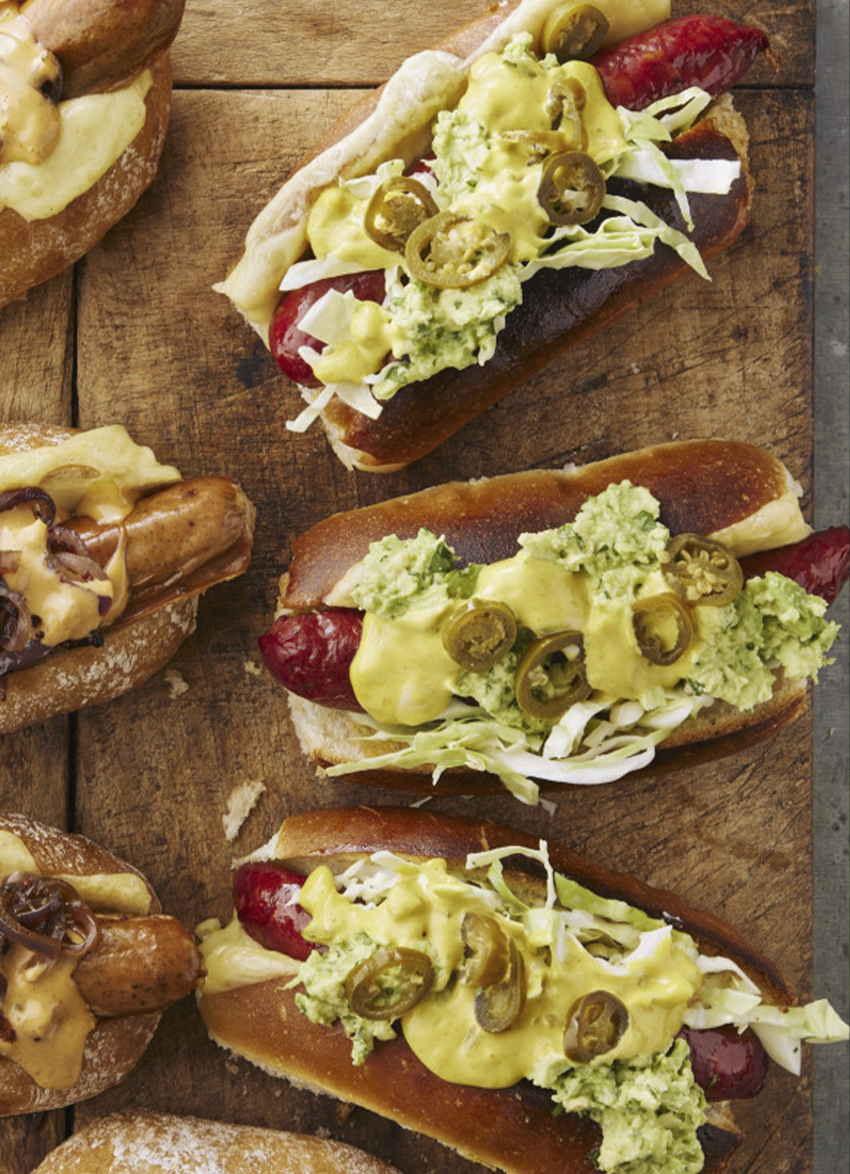 Chorizo Hot Dogs with Slaw, Avocado and Habanero Mayo