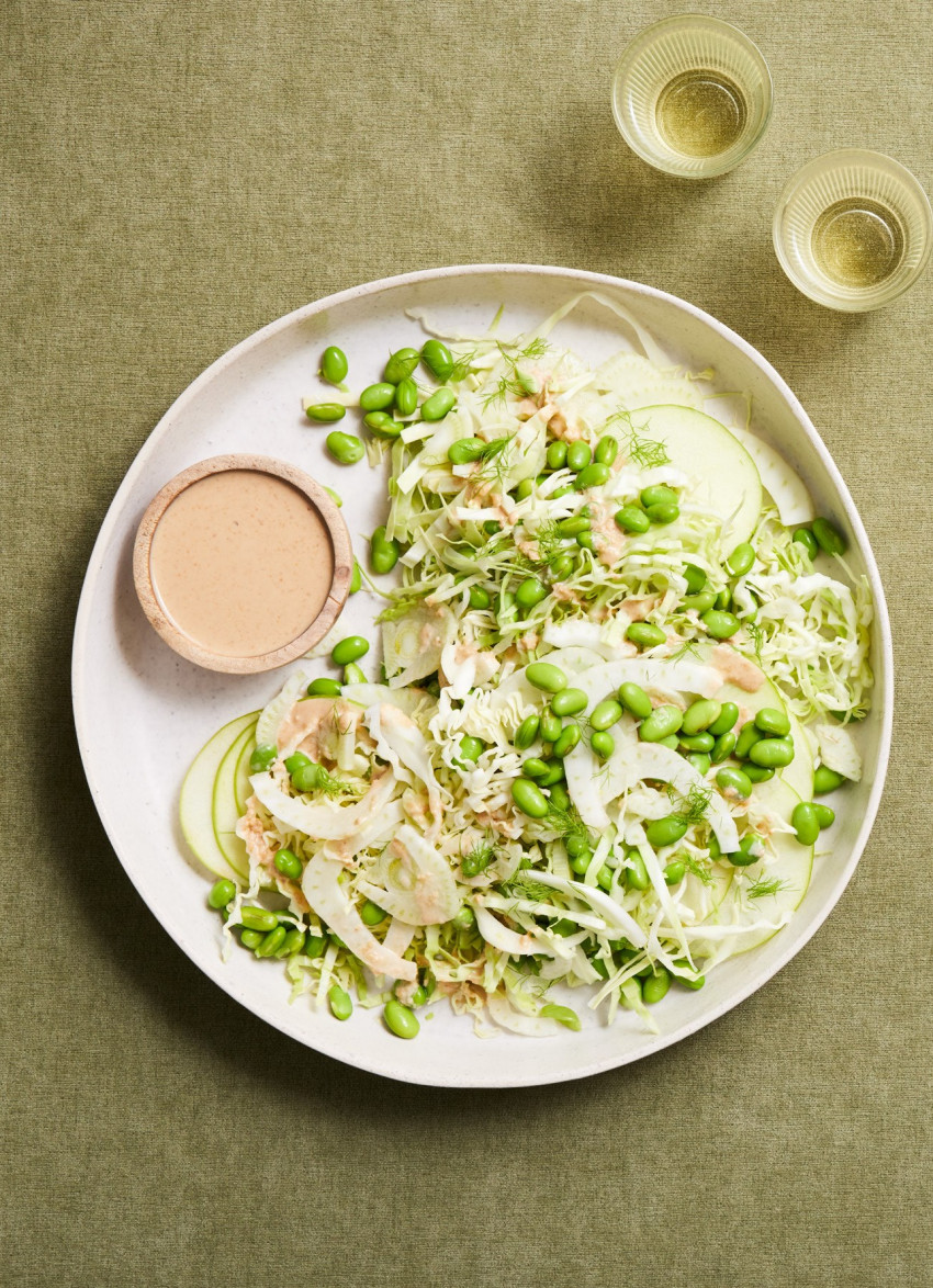 Crisp Apple, Cabbage and Edamame Bean Slaw