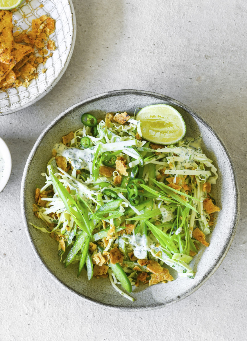 Crunchy Green Slaw with Tortilla Chips
