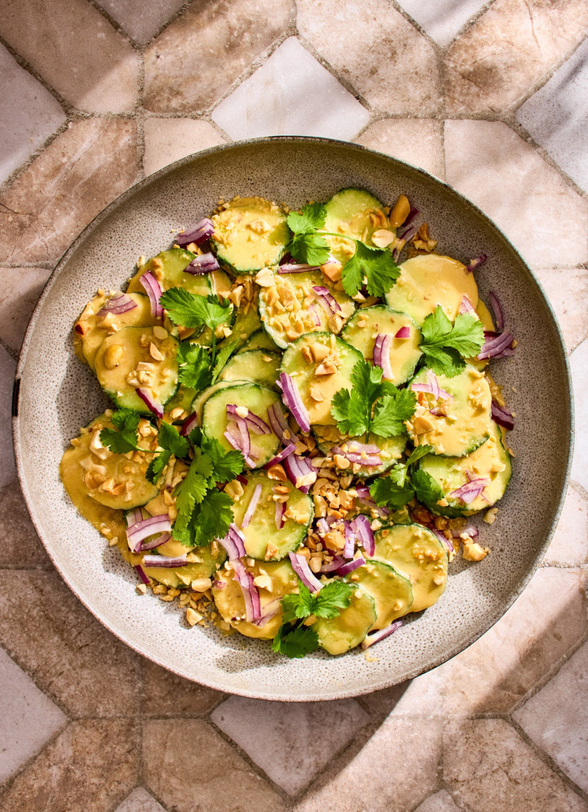 Cucumber Salad with Miso, Tahini and Maple Dressing