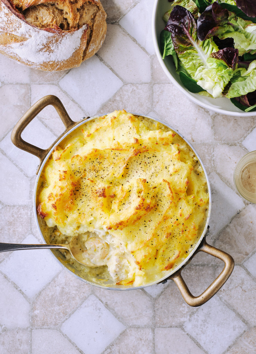 Fish, Prawn and Leek Pie with Creamy Mash