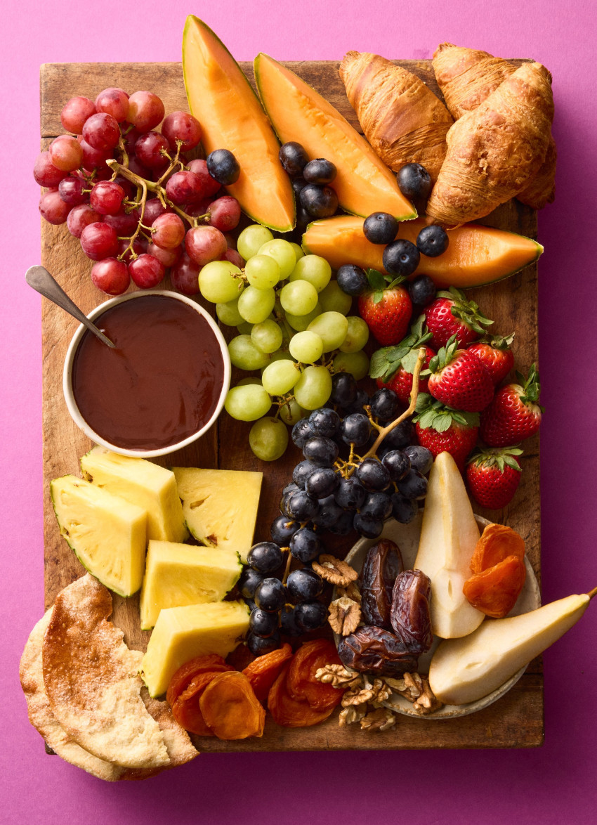 Fresh and Fruity Brunch Board with Chocolate Fudge Sauce