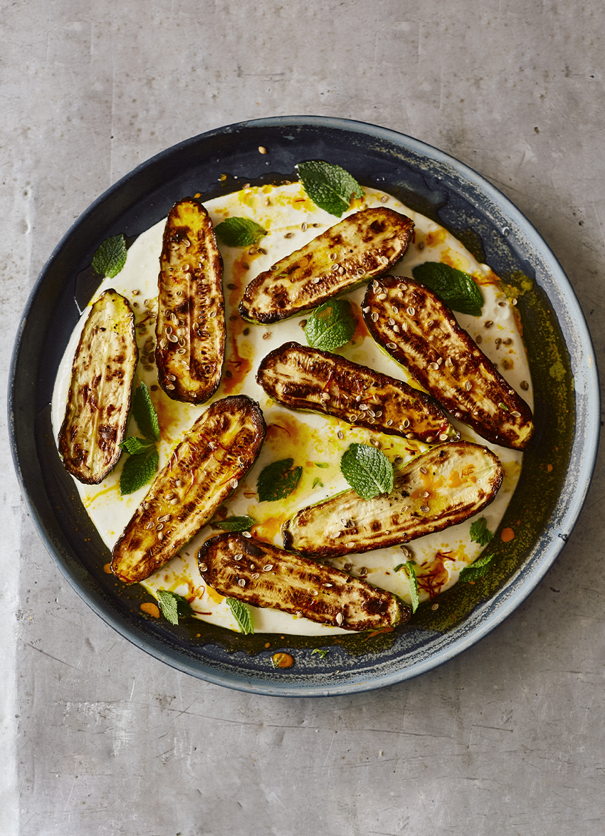 Grilled Courgettes with Warm Yoghurt and Saffron Butter