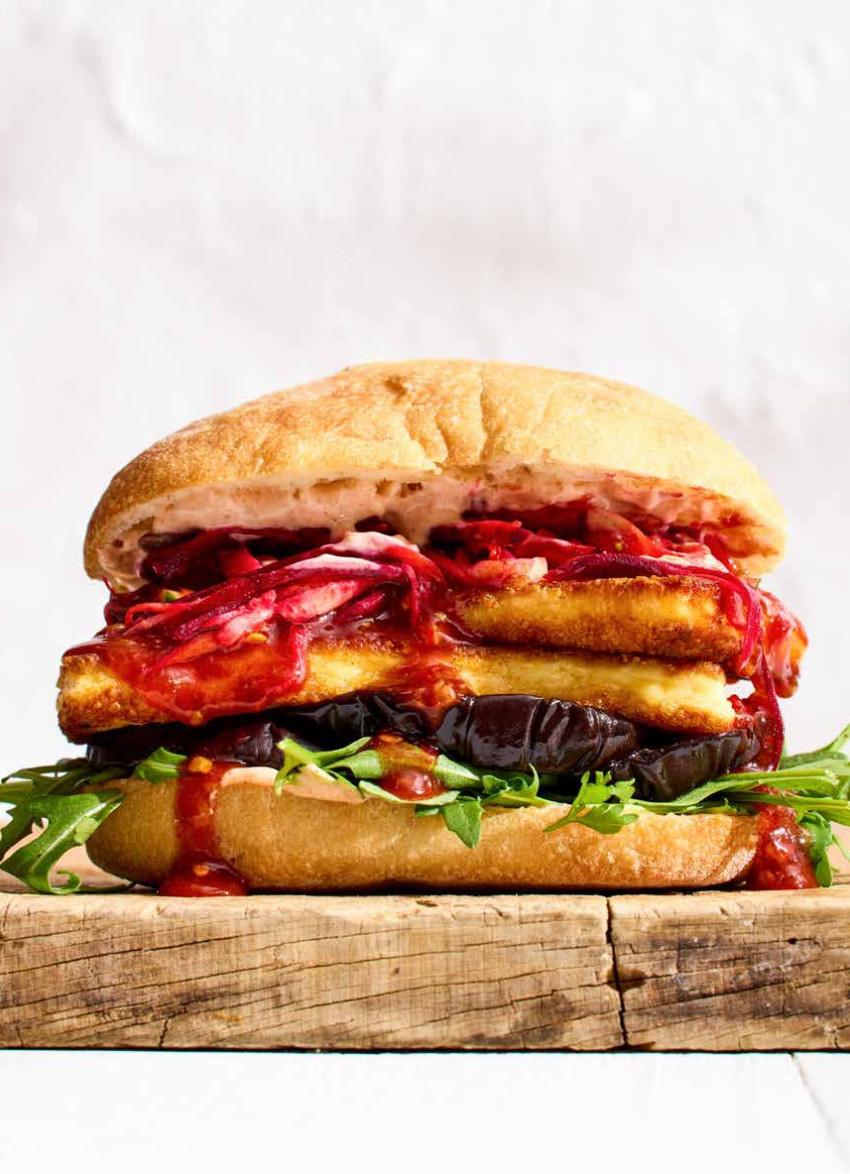 Haloumi and Eggplant Burger with Cheats ‘Piri Piri’ Sauce