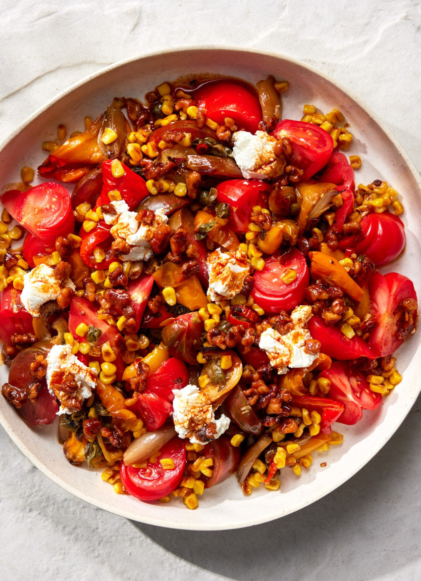 Jammy Roasted Capsicums, Corn and Heirloom Tomato Salad