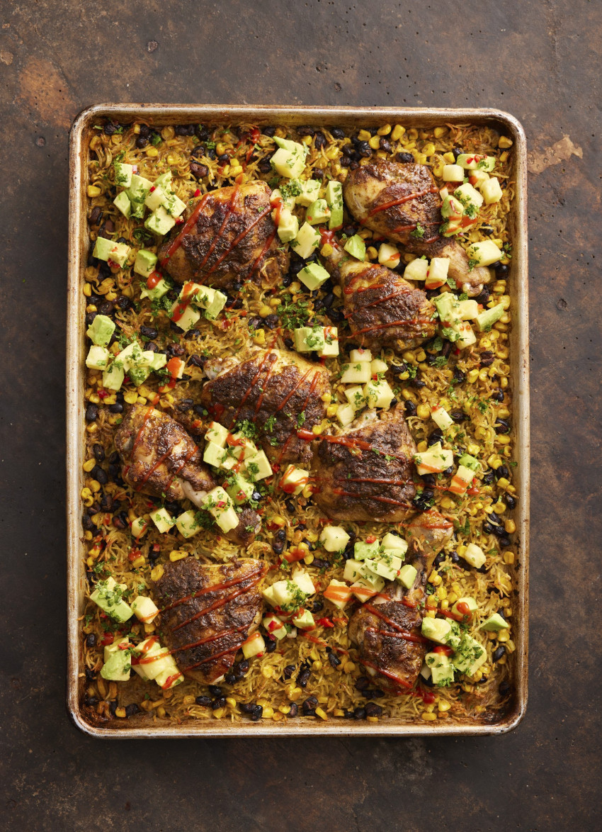 Jerk Chicken on Corn and Black Bean Rice