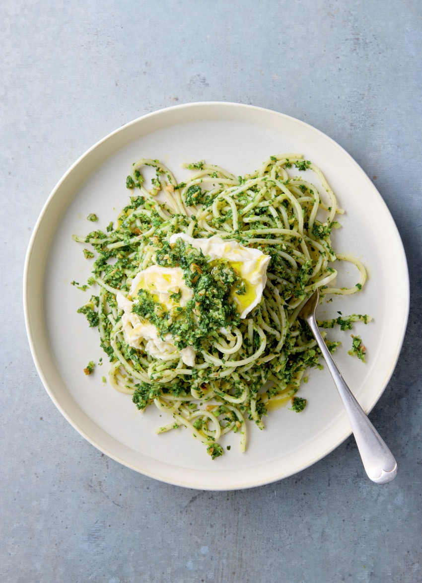 Lots of Winter Greens and Almond Pesto with Pasta