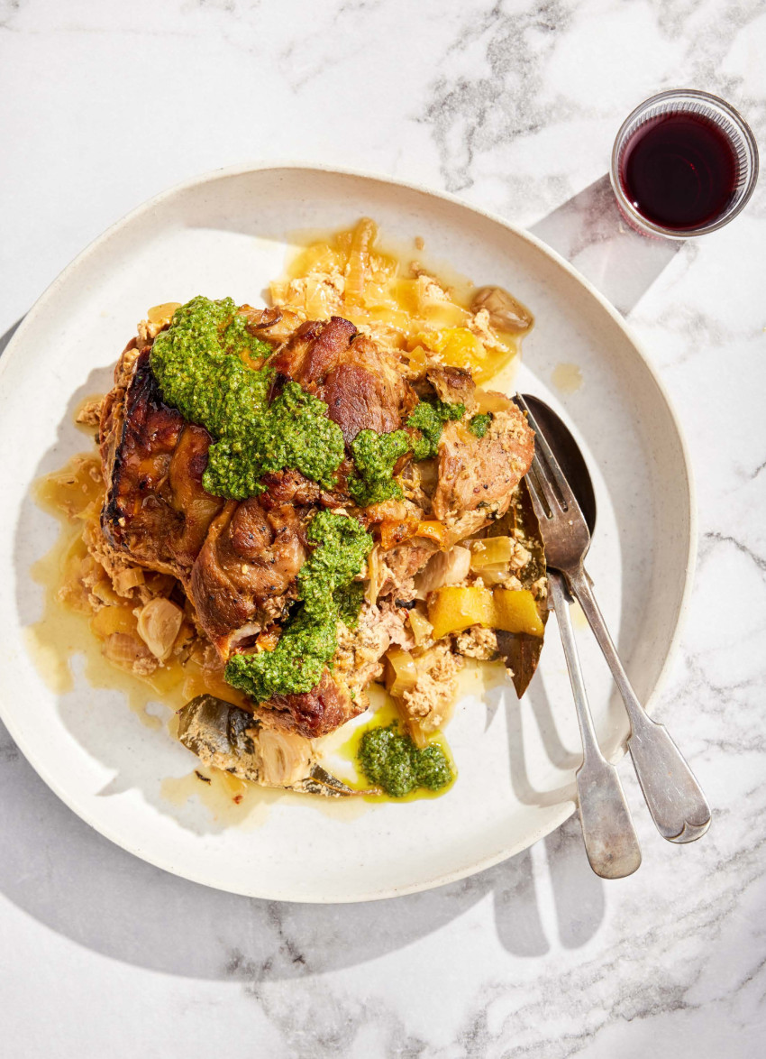 Milk-braised Pork Shoulder with Green Herb and Caper Sauce