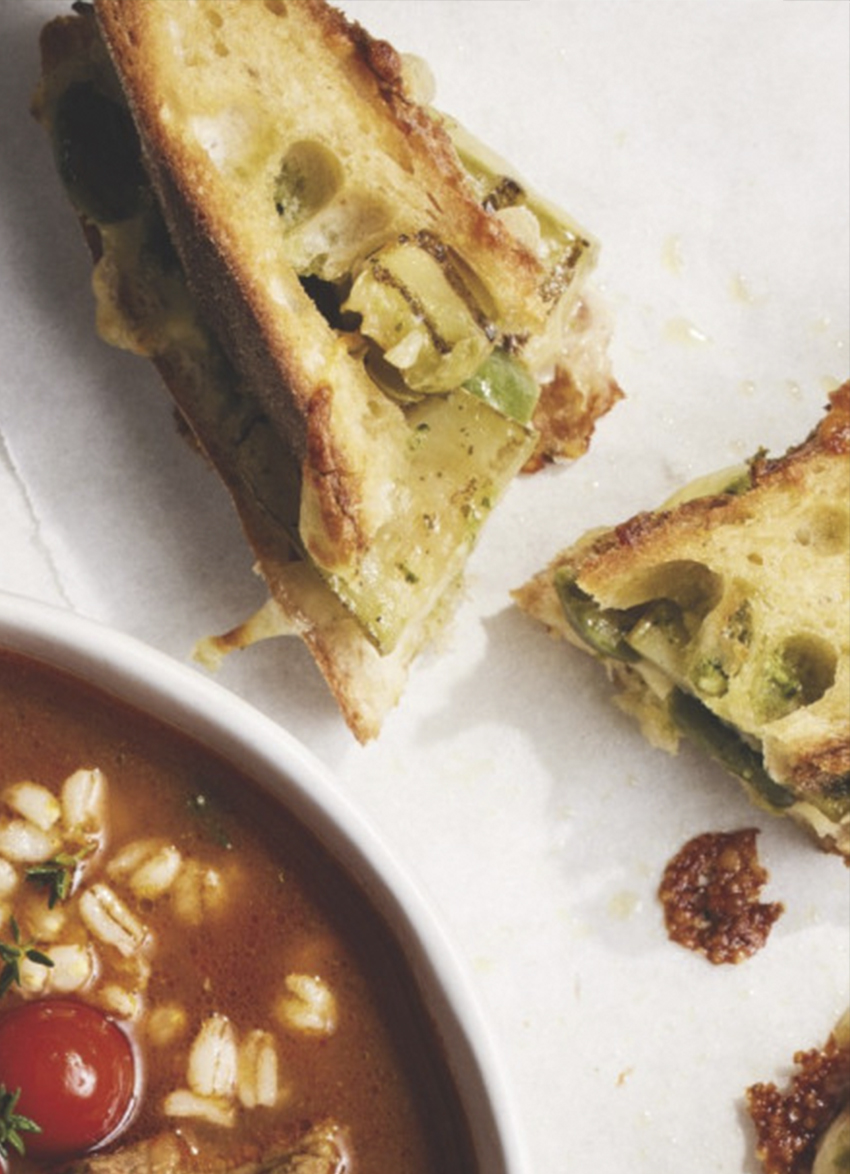 Mozzarella, Marinated Zucchini and Pesto Toastie