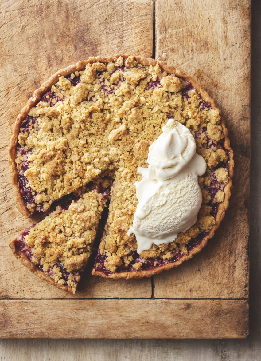 Plum and Pear Crumble Tart