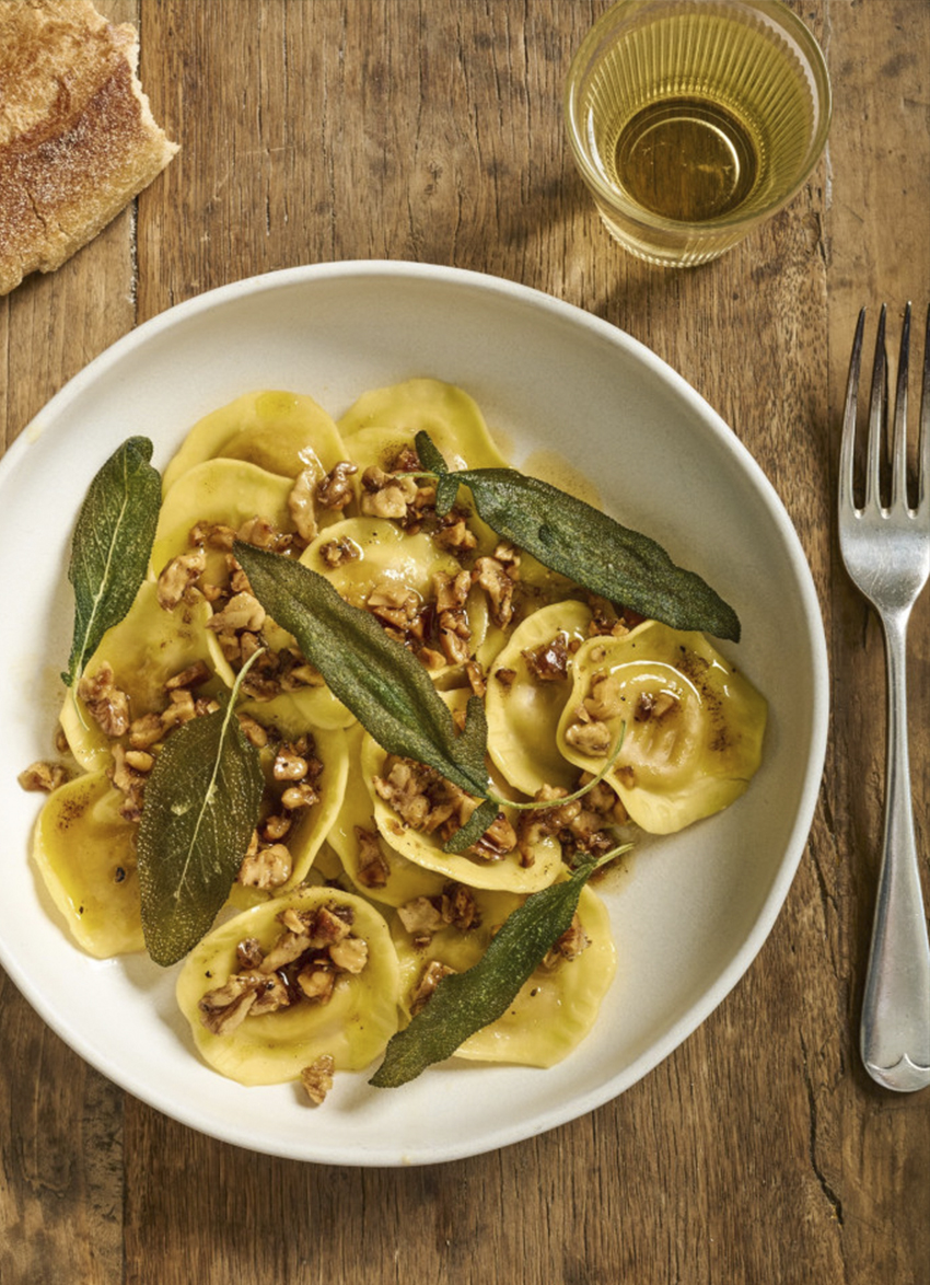 Pumpkin Ravioli with Crisp Sage, Browned Butter and Walnuts