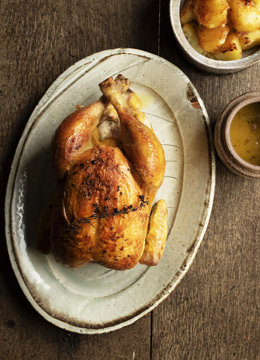 Roast Chicken with Roast Potatoes and Roasting Juices