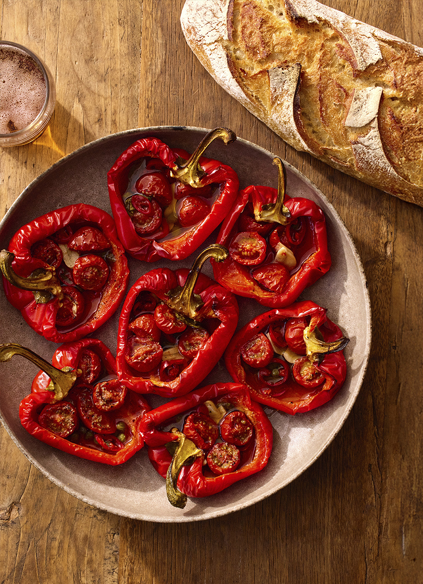 Roasted Capsicums with Tomatoes, Garlic and Basil