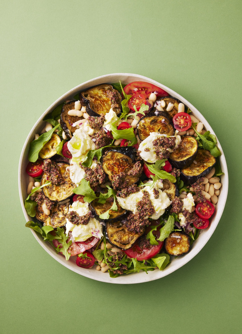 Roasted Eggplant, Tomatoes and Burrata with Tapenade