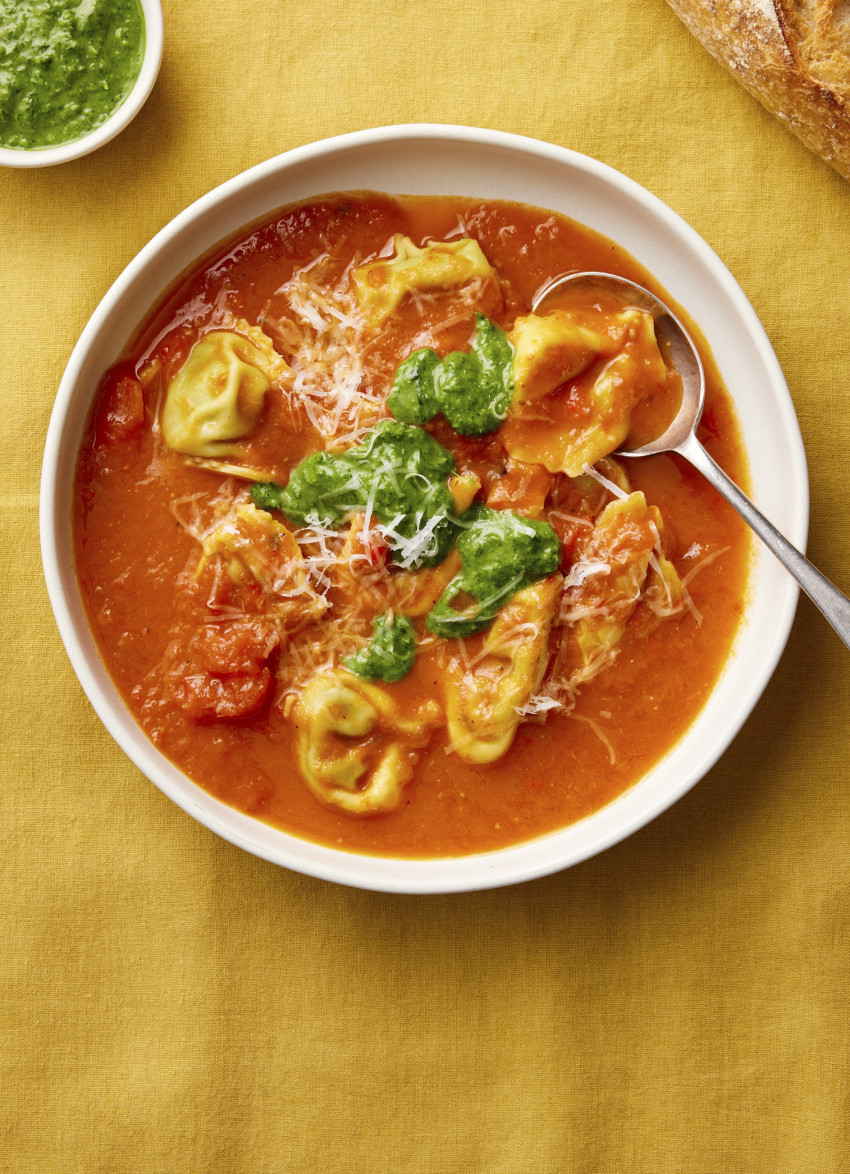 Roasted Tomato and Capsicum Soup with Spinach Tortellini