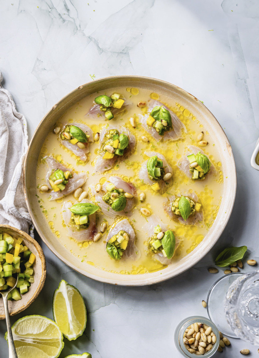 Snapper Crudo with Gin, Basil and Lime