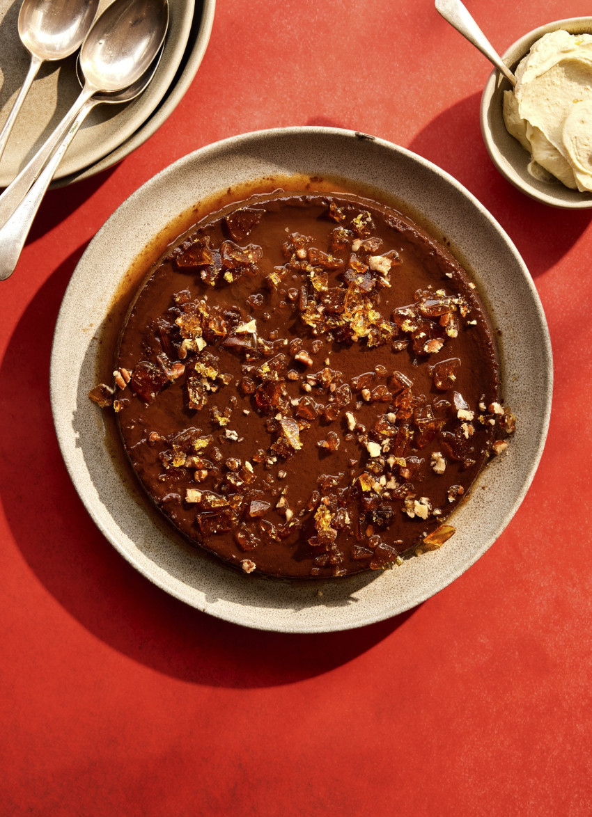 Spiced Chocolate and Orange Flan with Pecan Praline