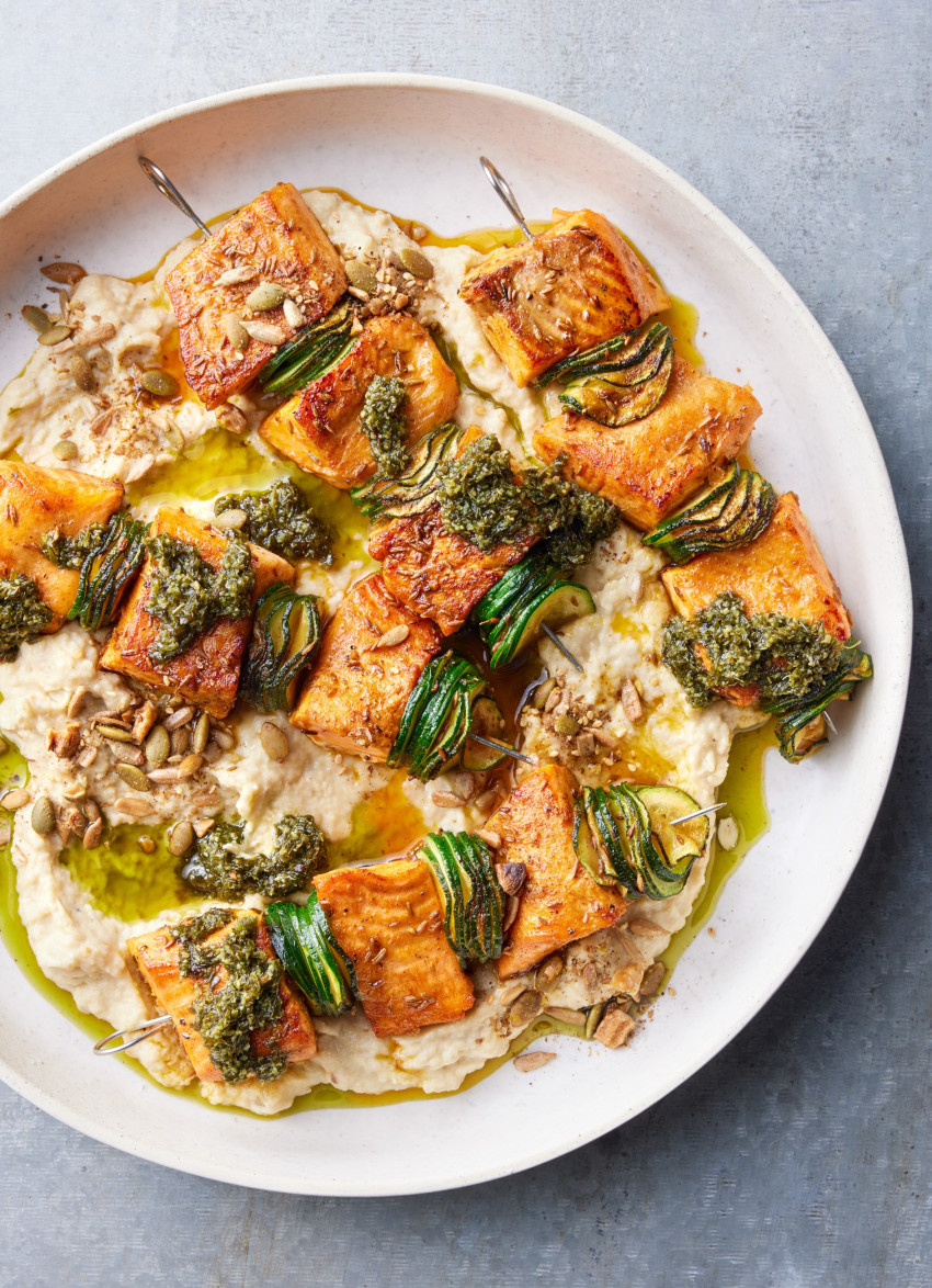 Spiced Salmon and Zucchini Skewers with Chimichurri