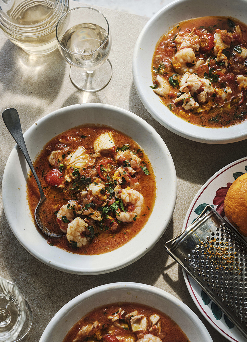 Spicy Fish Soup with Tomatoes and Orange Zest