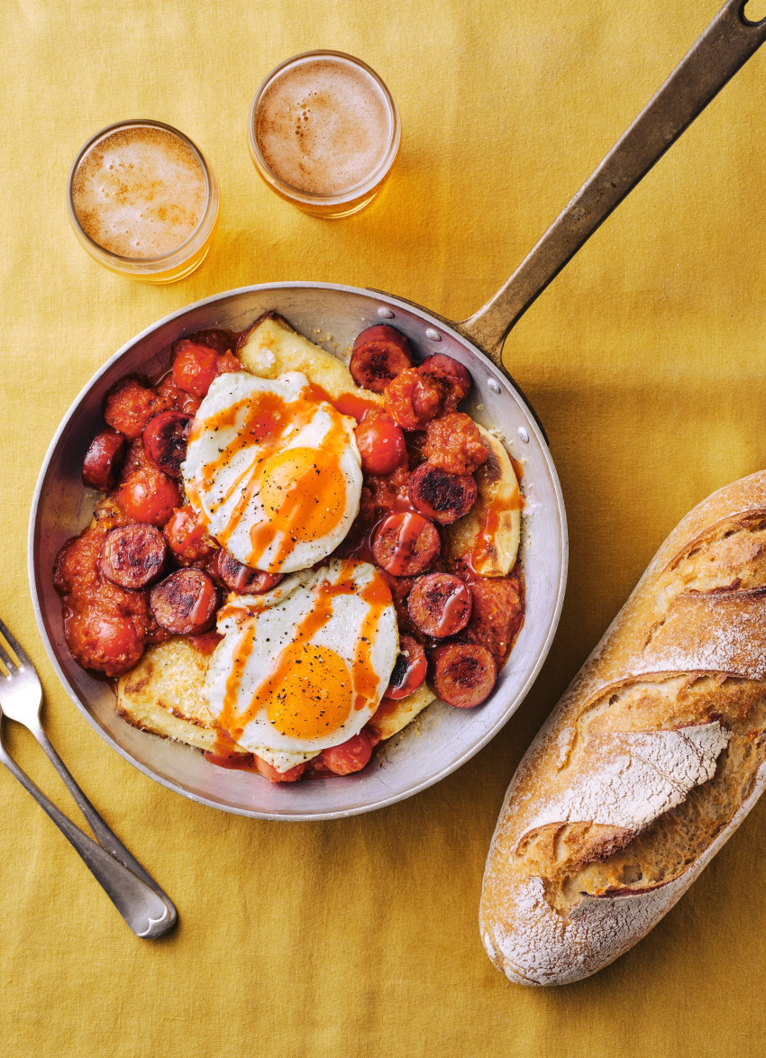 Sunny Side Up Baked Gnocchi with Spicy Tomato Sauce