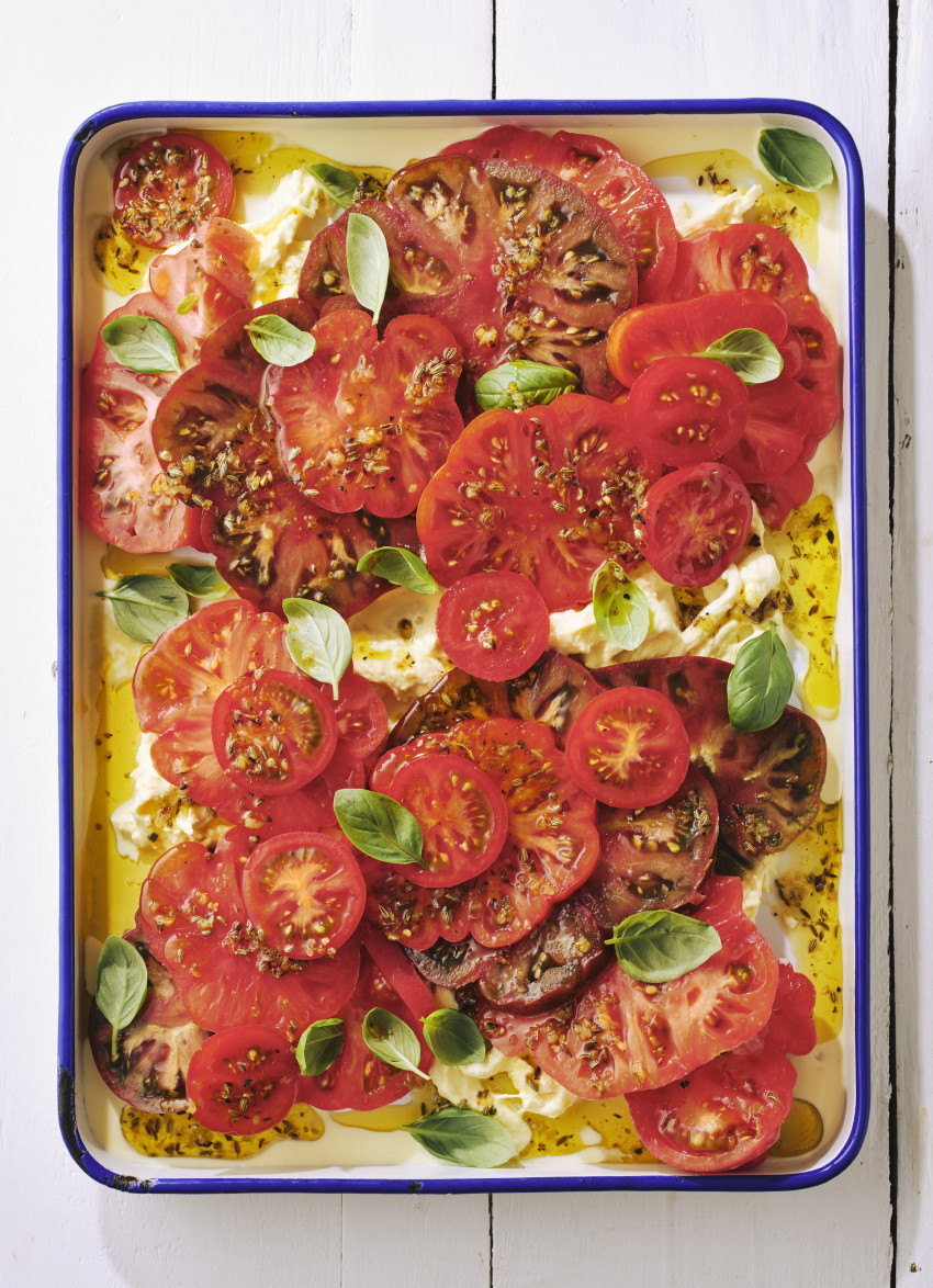Tomato and Stracciatella with Courtyard Dressing